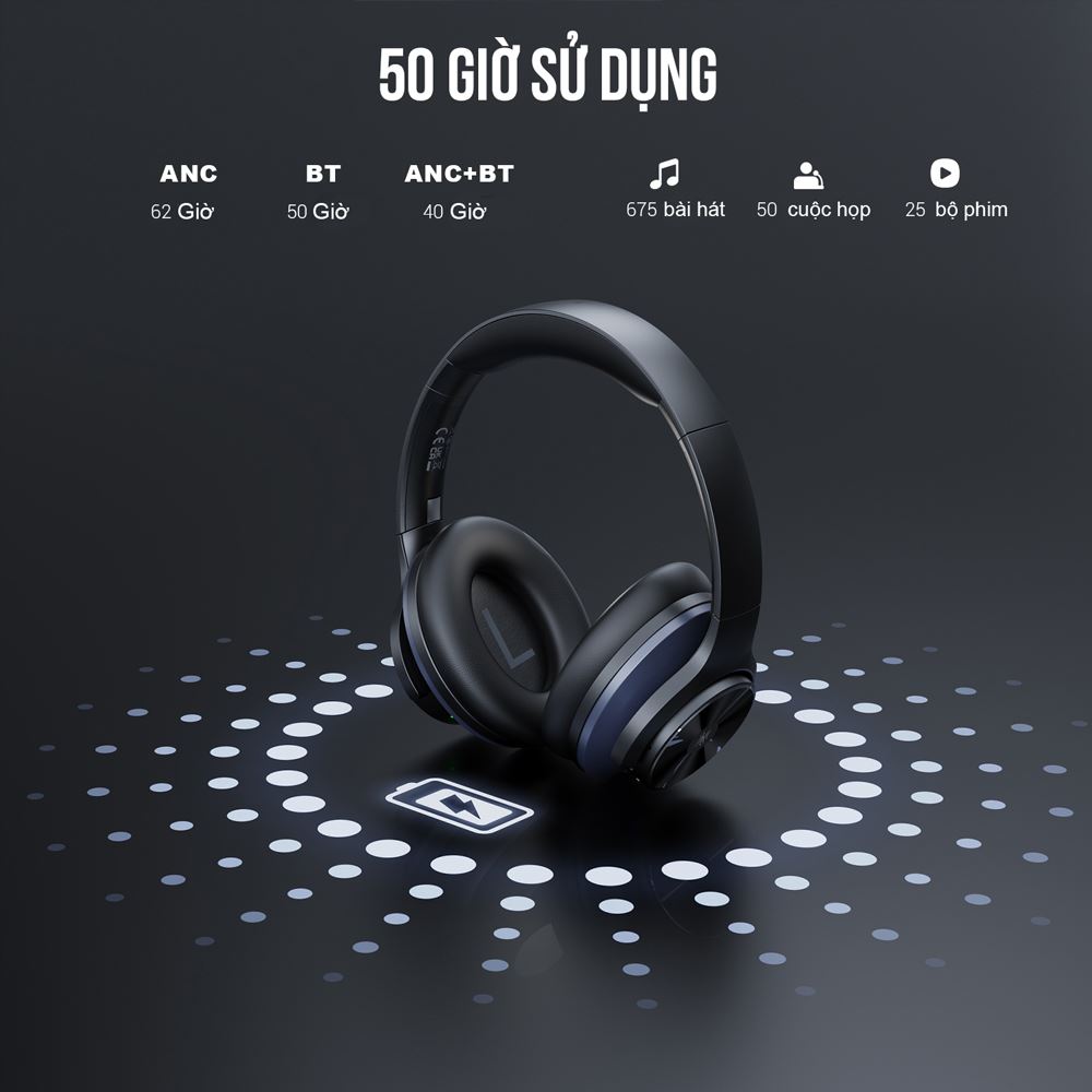 OneOdio A10 cho thời gian sử dụng lên đến khoảng 50 giờ. Với nhu cầu nghe nhạc, học tập hoặc họp online mỗi ngày vài tiếng, người dùng có thể dùng nhiều ngày mới cần sạc.