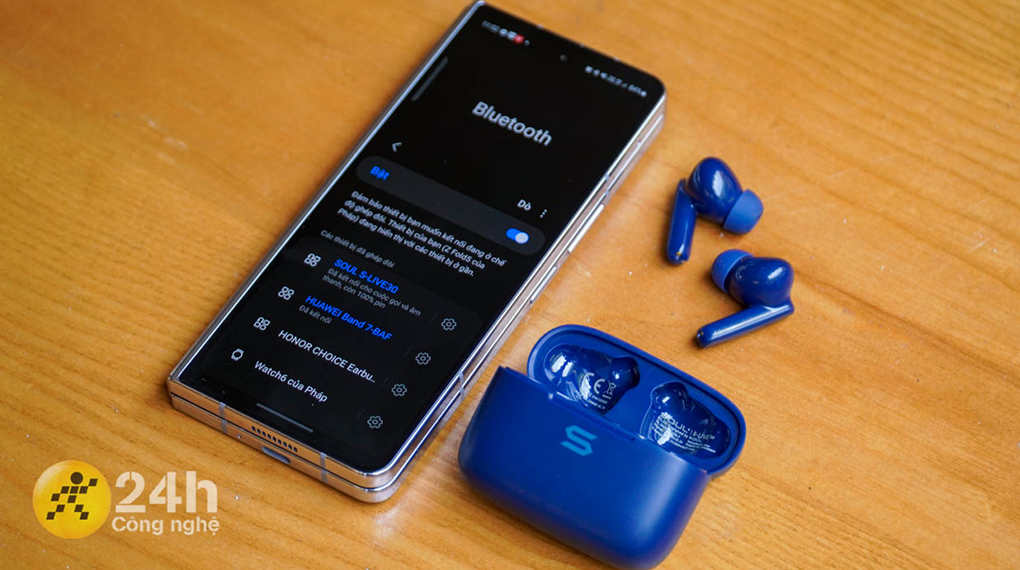 Tai nghe SOUL được trang bị công nghệ Bluetooth 5.3 mang đến độ ổn định cao khi sử dụng với laptop, điện thoại (bao gồm các dòng iPhone như iPhone 14, iPhone 15 và iPhone 15 Pro Max), máy tính bảng,... Do toàn thân của phần hộp này không có nút bấm vật lý nên bạn chỉ cần bật nắp hộp sạc là hệ thống tự tìm kiếm đến điện thoại để kết nối.