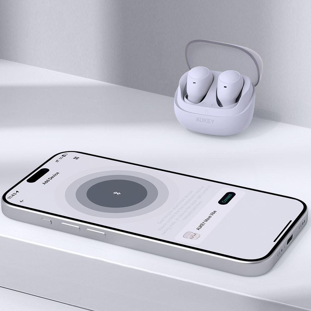 Khám phá tai nghe Bluetooth True Wireless Aukey EP-M3A - Tím, một lựa chọn hoàn hảo cho những ai tìm kiếm sự kết hợp giữa phong cách và công nghệ. Với thiết kế in-ear nhỏ gọn chỉ 35g (cả hộp sạc), màng loa 6 mm cùng kết nối Bluetooth 5.4 sản phẩm này mang đến trải nghiệm âm thanh sống động và mượt mà, đồng thời đạt chuẩn chống nước IPX4 lý tưởng cho mọi hoạt động hàng ngày.