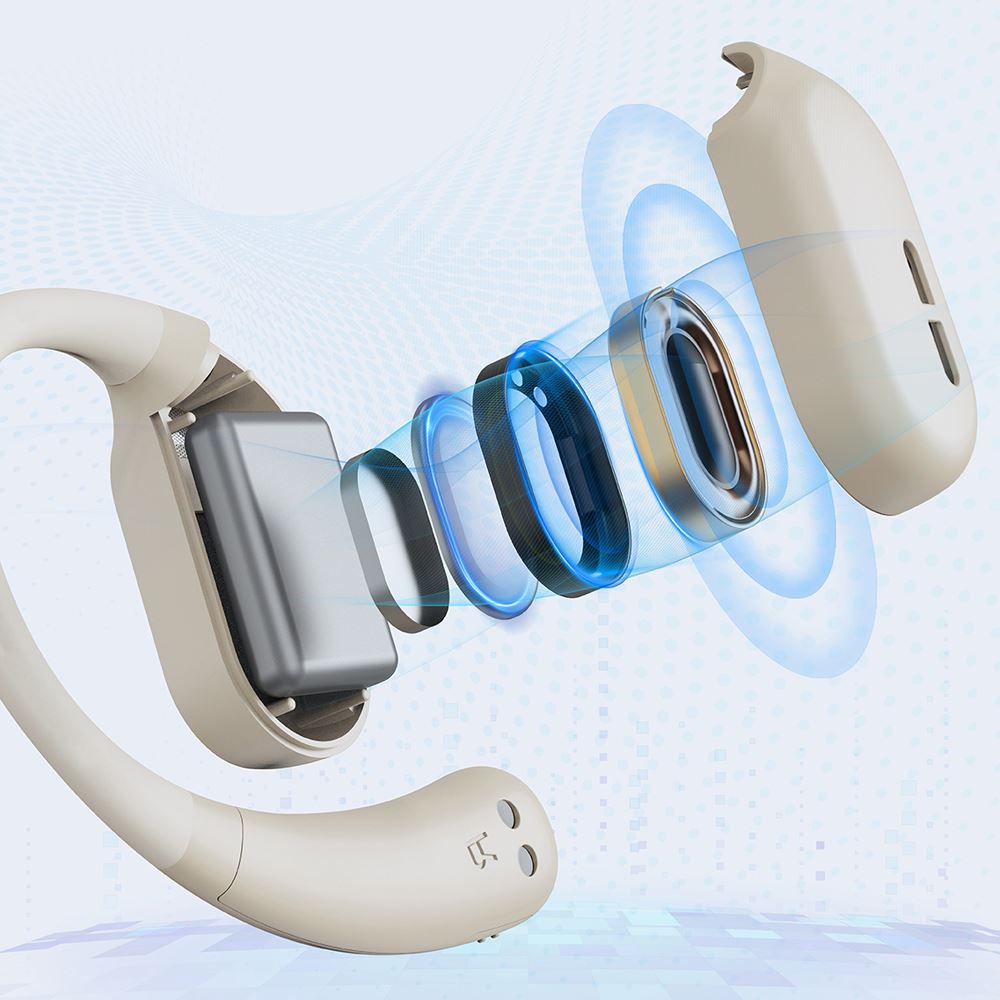 Điểm nhấn độc đáo là thiết kế OWS (Open-ear Wireless Stereo) - loại bỏ hoàn toàn cảm giác bí bách, đau tai thường gặp ở tai nghe in-ear truyền thống. Điều này giúp giảm áp lực lên ống tai, mang lại sự thoải mái tối đa ngay cả khi đeo liên tục trong thời gian dài.