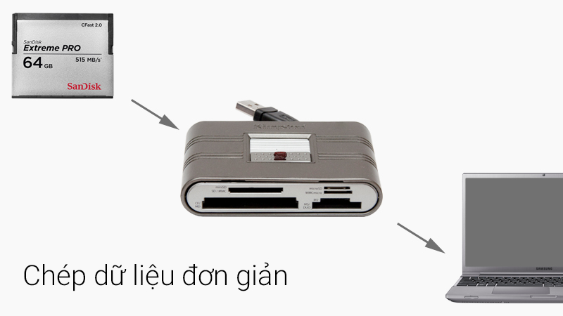* Khi mua đầu đọc bạn lưu ý đầu đọc phải có khe cắm cho thẻ với ký hiệu là chữ CF hoặc 1 lỗ to với nhiều chân cắm.