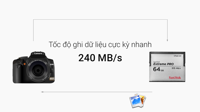 * Tốc độ ghi dữ liệu 240 MB/s: chép một video dung lượng 5 GB vào thẻ nhớ trong tích tắc.