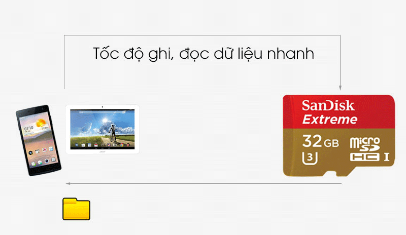 * Tốc độ ghi dữ liệu (tối thiểu) 10 MB/s: chép một video dung lượng 5 GB vào thẻ nhớ trong 9 phút.
