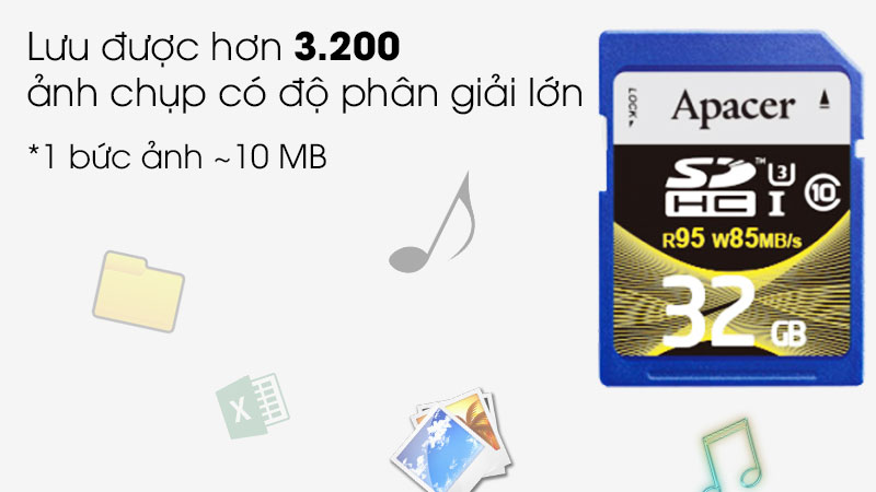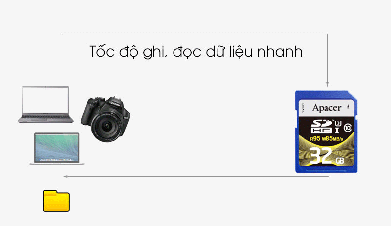 * Tốc độ ghi dữ liệu 85 MB/s: chép dữ liệu 1 GB vào thẻ nhớ trong 0.2 giây.
