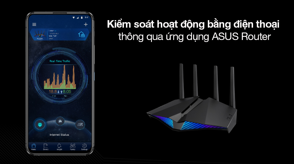 Có thể thấy rằng với chuẩn WiFi 6, tốc độ đến 5378 Mbps, thiết lập chế độ chơi game cho thiết bị di động, hiệu ứng đèn đẹp mắt, tạo hệ thống ASUS AiMesh phủ sóng rộng kèm nhiều tính năng an toàn, quản lý bằng điện thoại qua ASUS Router, chiếc router Asus RT-AX82U chắc chắn là thiết bị định tuyến hiện đại mà bạn nên sở hữu để tận hưởng giải trí tuyệt vời mỗi ngày.