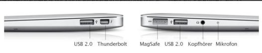 Tương tự như model 13 inch, MacBook Air 11 inch cũng được trang bị cổng kết nối tốc độ cao Thunderbolt Air 11. Ngoài ra nó còn có 2 cổng USB 2.0 và một cổng cắm tai nghe. Về tổng thể thì các cổng kết nối trên MacBook khá là nghèo nàn khi không có nhiều thay đổi so với phiên bản 2010 . Sản phẩm cũng không có đầu đọc thẻ SD.