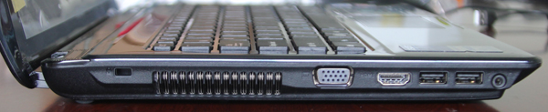 Bên trái thân máy tính từ trái qua phải là : Khe khóa kensington, cổng VGA, cổng HDMI, 2 cổng USB và 1 jack cắm tai nghe ( hoặc mic tùy chỉnh trong hệ điều hành).Trước thân máy , ngay dưới touchpad là 1 khe đọc thẻ nhớ SD/MMC (5-trong-1).Máy có 3 cổng USB.WifiWifi của máy không có gì đáng phàn nàn, sử dụng card Atheros AR9285, cho khả năng bắt sóng mạnh mẽ, ở khoảng cách 5m so với bộ phát wifi và không có vật cản tốc độ truyền tải vào khoảng 36.5Mbp/s , ở khoảng cách 10m bị chắn bởi một bức tường tốc độ vào khoảng 22Mbp/s, ở khoảng cách 25m và bị chắn bởi 3 bức tường tốc độ là 6.5Mpb/s.Kết luận:Model có thiết kế đẹp, cấu hình mạnh so với giá thành.Bàn phím, touchpad, màn hình, wifi chất lượng tốt, nhiều công nghệ hữu ích. Máy chạy êm và mát.