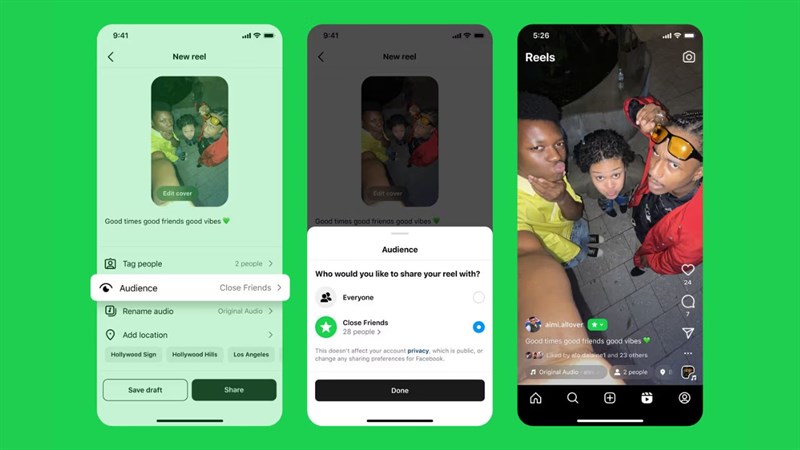 Việc chia sẻ một bài viết hoặc video chỉ với Close Friends rất đơn giản. Khi bạn tạo một bài viết, hãy chạm vào nút Đối tượng, chọn Bạn thân và nhấn Chia sẻ. Bài viết hoặc Reel của bạn sẽ được đánh dấu bằng biểu tượng màu xanh lá cây, nghĩa là chỉ những người được bạn chọn mới có thể thấy.