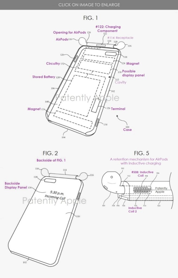 Bằng sáng chế cho thấy ốp lưng iPhone mới có tích hợp thêm khoang chứa và sạc cho AirPods. Dĩ nhiên, bên trong khoang chứa sẽ được đặt nam châm để cố định tai nghe.