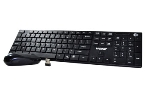 Bàn phím không dây dạng thanh với tông màu đen nhám kích thước 432x116x24mm, trọng lượng 580g.