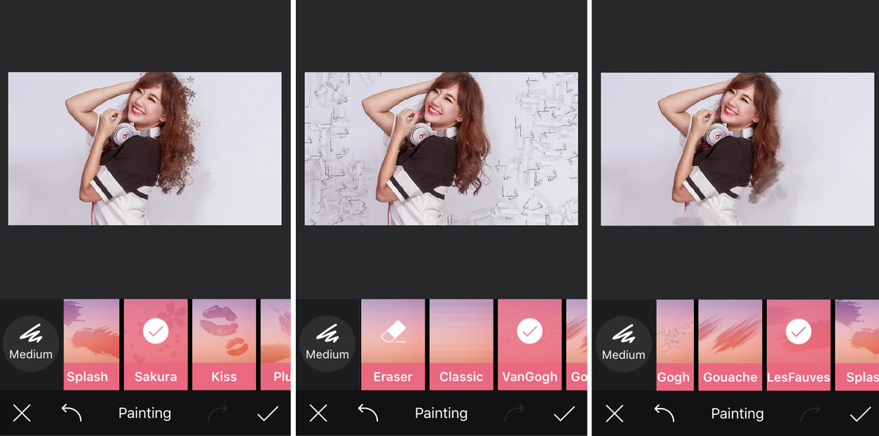 Quá trình thử nghiệm với những bức hình cho thấy các bộ lọc (Filters) như Dreams, The Scream, Transverse Line, Flame flower, Electric,... tạo cảm giác như được vẽ bằng chì và màu nước với phong cách của từng trường phái nghệ thuật.