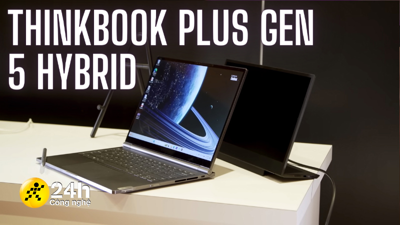 Sản phẩm đáng chú ý nhất là ThinkBook Plus Gen 5 Hybrid - laptop lai chạy song song Windows và Android. Phần mâm đi kèm CPU Intel Core Ultra 7, 32 GB RAM với 1 TB SSD và viên pin 75Whr.