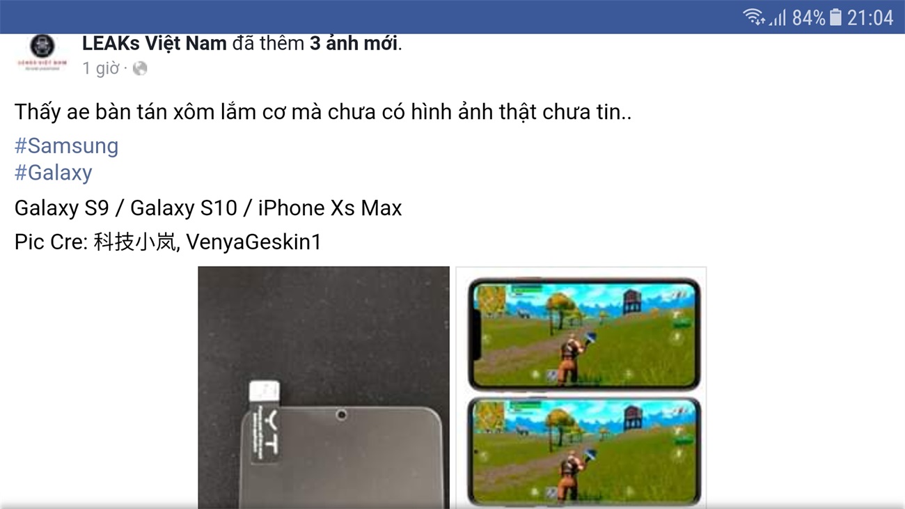 Không chỉ hé lộ thiết kế mặt trước của Galaxy S10, nguồn tin này còn đăng thêm ảnh so sánh với Galaxy S9 và iPhone Xs Max.