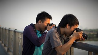 Nếu bạn là người cầm máy, hãy cố gắng học theo cách nhìn của trẻ. Trước hết, ngồi xuống thấp với chúng và chụp hất ngang từ hông hoặc ngực trở lên. Sẽ là sai lầm lớn khi bạn cứ đứng từ trên cao và chĩa xuống đám trẻ dưới chân mà chụp. Những bức ảnh thu được sẽ thiếu một phần quan trọng nhất, đó là khuôn mặt - nơi biểu lộ cảm xúc quan trọng nhất. Ngoài ra, khi ngồi xuống thấp, việc bố cục theo kiểu chụp chân dung sẽ đơn giản hơn rất nhiều.