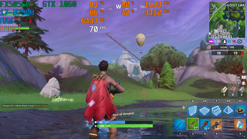 Với Fortnite thì mức cấu hình cao cho tỉ lệ khung hình dao động quanh mức 70 FPS là một điều có thể chấp nhận được, khi mà ở trên các thiết bị di động thì mức FPS tối đa chỉ đạt tới 60 mà thôi. Game chơi cũng rất mượt và ít gặp tình huống sụt giảm FPS.