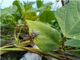 Dưới giàn bông đậu rồng là nơi sinh sống của nhiều loại côn trùng khác nhau. Mình may mắn chụp được một mạng nhện nhờ ống kính macro của Galaxy A12. Mình rất bất ngờ khi xem ảnh, mọi chi tiết hiện lên rất sắc nét.