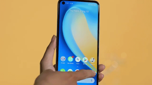 Còn ở mặt trước máy sử dụng màn hình đục lỗ với kích thước 6.5 inch, độ phân giải HD+ nhưng có tần số quét lên tới 90 Hz, đem lại sự mượt mà trong quá trình sử dụng. Màu sặc màn hình đẹp mắt, khả năng hiển thị ở mức tốt, độ sáng cao, có thể sử dụng cả trong điều kiện trong nhà và ngoài trời râm mát.
