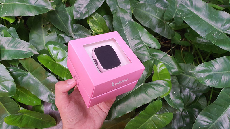 Ngay từ cái nhìn đầu tiên, mình đã rất ấn tượng với chiếc hộp hình vuông với thiết kế năng động. Bên trong hộp đựng, bạn sẽ nhận được một chiếc đồng hồ Masstel Super Hero phiên bản màu Hồng, dây sạc và nắp sạc (kết nối thiết bị với dây sạc). Ngoài ra, máy không có củ sạc.