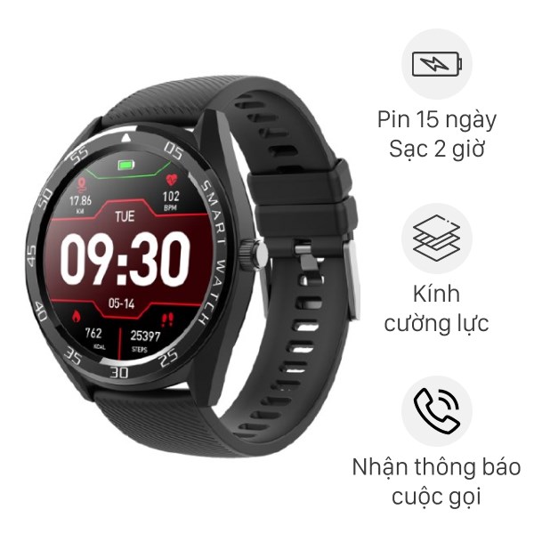 - Theo dõi sức khỏe: Đếm số bước chân, Đo nồng độ oxy (SpO2), Theo dõi nhịp tim 24h
