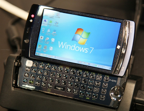 | Fujitsu F-07C chạy cả hai hệ điều hành Symbian và Windows 7. Ảnh: Mydrivers. |