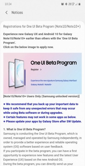 Những ai muốn thử nghiệm One UI 2.0 beta sẽ phải đăng ký thông qua ứng dụng Samsung Members nhưng cũng giống như các phiên bản trước, sẽ có một số điểm hạn chế. Sau khi hoàn tất việc đăng ký, bạn sẽ nhận được bản cập nhật firmware mới qua OTA.