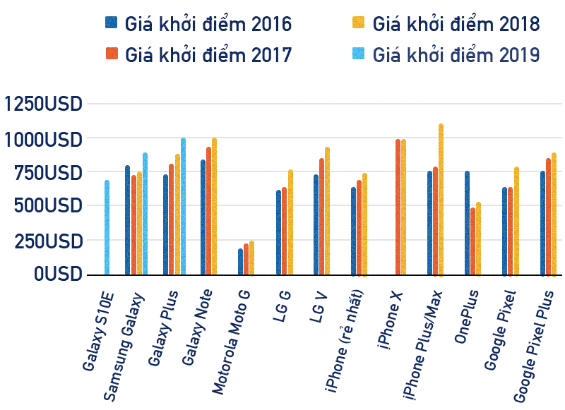 Ngoại trừ một vài trường hợp của các thương hiệu nhỏ và mới, giá của điện thoại từ các thương hiệu hàng đầu đều đang tăng từng năm. Sự gia tăng này dễ dàng nhận thấy khi so sánh giá điện thoại hiện tại với mẫu đời cũ được ra mắt từ hai hay ba năm trước.