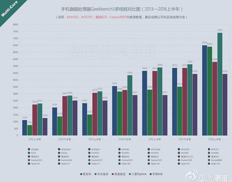 Trang AndroidPIT cho rằng: câu chuyện bắt đầu từ những kết quả điểm số Benchmark tràn lan trên internet, bài kiểm tra cho thấy chip Exynos 8890 cây nhà lá vườn của Samsung là người đứng đầu khi sử dụng lõi đa nhân. Theo sau là Helio X20 của MediaTek, Huawei Kirin 950, Snapdragon 820 và Apple A9 bị bỏ lại khá xa ở vị trí cuối cùng.