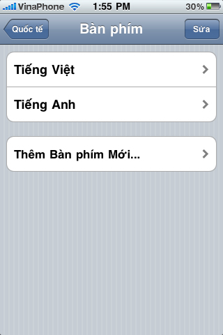 | Màn hình iOS 4 với giao diện tiếng Việt đầy đủ và cho phép thay đổi hình nền. |