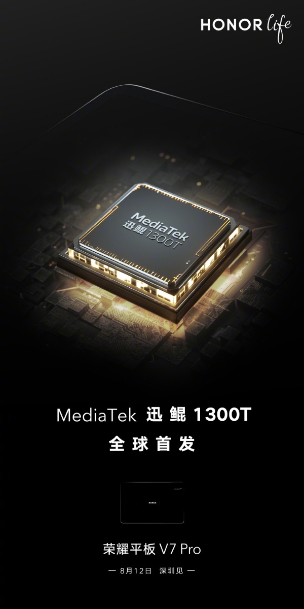 Mới đây, tài khoản Weibo của Honor Smart Life đã chính thức xác nhận rằng Honor Tablet V7 Pro sẽ được trang bị bộ vi xử lý MediaTek Kompanio 1300T mới ra mắt hôm qua.