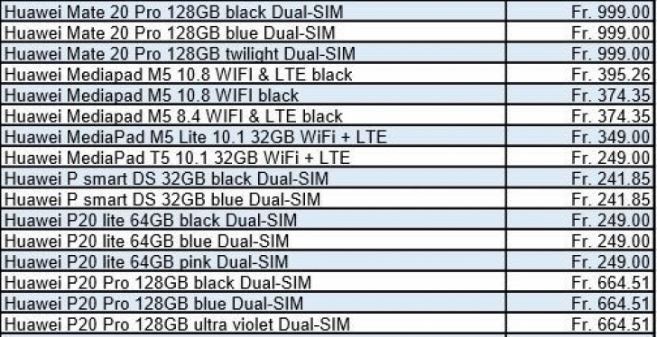 Giá bán của Huawei Mate 20 và Mate 20 Pro rò rỉ trong bài là đồng Franc của Thụy Sĩ, cho nên khi bộ đôi này lên kệ toàn cầu sẽ có chênh lệch ít nhiều giữa tỷ giá ở các quốc gia.