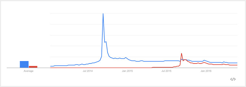 Tất cả các số liệu thống kê dường như đều đang rất bất lợi cho nhà Táo. Theo thống kê từ công cụ đánh giá xu hướng Google Trends, người dùng vẫn đang dành nhiều sự quan tâm hơn cho mẫu iPhone cũ đã xuất hiện từ năm 2014 hơn là mẫu iPhone 6s mới của năm ngoái. Cho dù biên độ chênh lệch giữa iPhone 6 và 6s vẫn là tương đối hẹp, nhưng chẳng phải theo lẽ thường, một mẫu smartphone mới ra sẽ phải thu hút được nhiều sự quan tâm hơn ư?