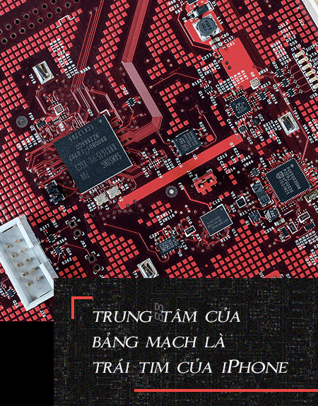 Ở trung tâm của bảng mạch là trái tim của iPhone - bộ vi xử lý của Apple. Bộ phận này gồm bộ nhớ K4X1G153PC của Samsung xếp chồng lên bộ xử lý ARM 620 MHz nhờ phương pháp tích hợp mạch gọi là PoP với CPU nằm ở dưới và bộ nhớ nằm ở trên để chạy hệ điều hành iPhone.
