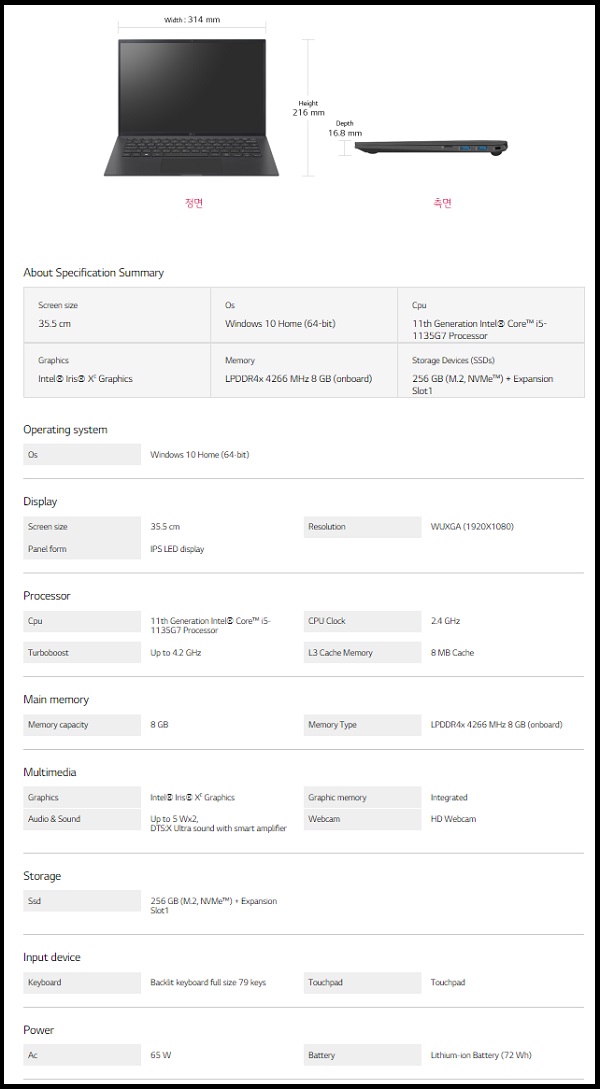 Đoạn video gần như hoàn toàn bằng tiếng Hàn, nhưng cũng đã chỉ ra nhiều thay đổi lớn của dòng Gram 2021 so với phiên bản 2020. Ngoài ra, LG cũng đã xuất bản bảng thông số kỹ thuật của dòng sản phẩm mới ra mắt vào năm sau.