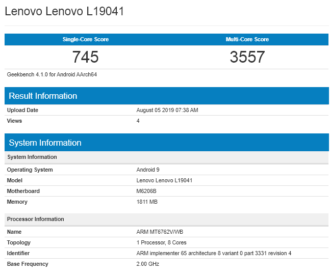 Danh sách GeekBench cho thấy Lenovo A6 Note dùng chip MediaTek Helio P22 tốc độ 2.0 GHz kết hợp với 3 GB RAM và chạy Android 9.0 Pie với giao diện ZUI tùy chỉnh của Lenovo.