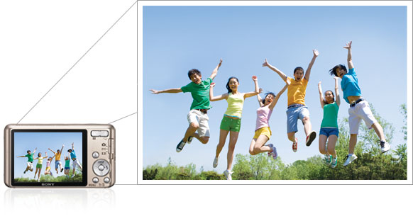 Với màn hình LCD cỡ lớn Clear Photo 2.7” (230,000 điểm ảnh), bạn có thể dễ dàng chiêm ngưỡng những bức ảnh và các thước phim tuyệt đẹp với màu sắc tự nhiên trong đều kiện ánh sáng ngoài trời. Không dừng lại tại đó, trong quá trình chụp bạn có thể xem trước sự hài hòa của từng tấm ảnh và các chế độ cài đặc trong máy trước khi bạn bấm nút chụp.