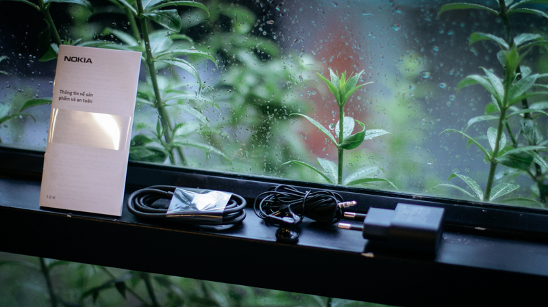 Bên trong là: Sạc, cáp, tai nghe, sách hướng dẫn sử dụng. Chúng ta sẽ không có que lấy SIM bởi Nokia 2 hoàn toàn có thể tháo được nắp lưng để gắn SIM và thẻ nhớ.