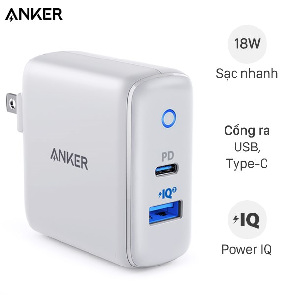 3. Adapter sạc 2 cổng USB 2.4A Type-C PD 3A Anker PowerPort - A2626 Trắng