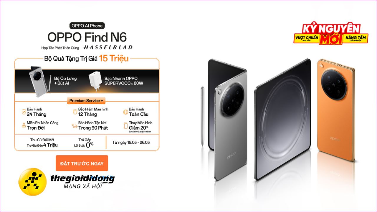- Đặt trước OPPO Find N6 ngay hôm nay, nhận bộ quà trị giá đến 15 triệu
