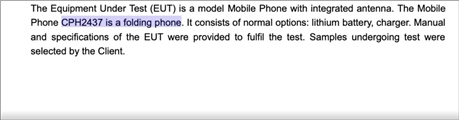 Danh sách này còn tiết lộ thêm rằng máy sẽ chạy sẵn ColorOS 13 dựa trên Android 13 ngay khi ra mắt. Thiết bị còn có viên pin với model BLP971 với dung lượng 3.110 mAh và BLP969 có dung lượng 1.190 mAh, hỗ trợ sạc 67 W. Những hình ảnh được tìm thấy trên FCC cũng gợi ý thêm rằng đây chính là OPPO Find N2 Flip.