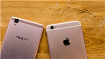 OPPO R7s và iPhone 6s Plus màu vàng hồng cùng nhau khoe dáng