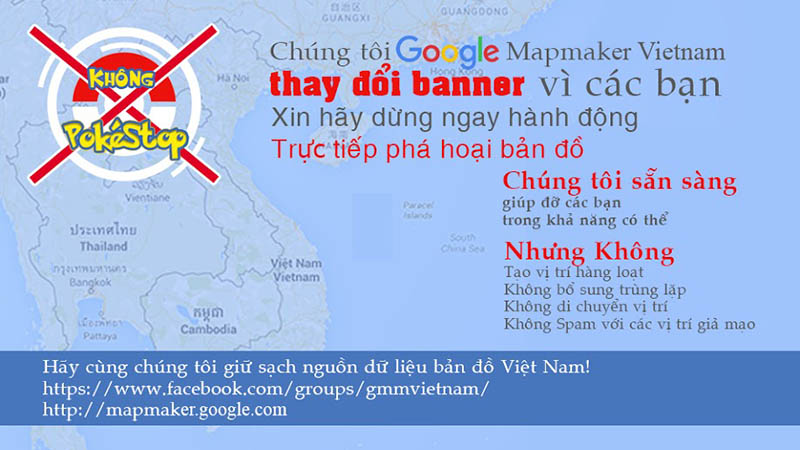 "Xin các bạn hãy dừng ngay hành động phá hoại bản đồ vì Pokémon, chúng tôi ở đây, và sẵn sàng giúp đỡ các bạn trong khả năng có thể. Nhưng không: