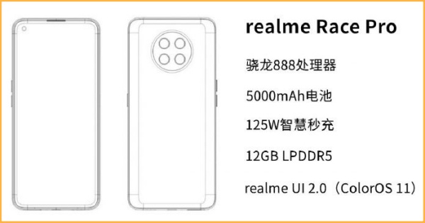 Giới thạo tin cho biết Realme Race Pro sẽ có pin 5.000 mAh và hỗ trợ sạc nhanh 125 W. Bên cạnh đó, tân binh này còn được trang bị chip Snapdragon 888 mới nhất của Qualcomm, kết hợp với 12 GB RAM LPDDR5 và chạy Realme UI 2.0 dựa trên ColorOS 11.