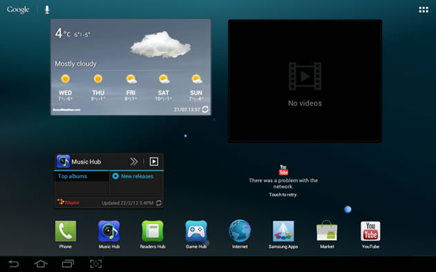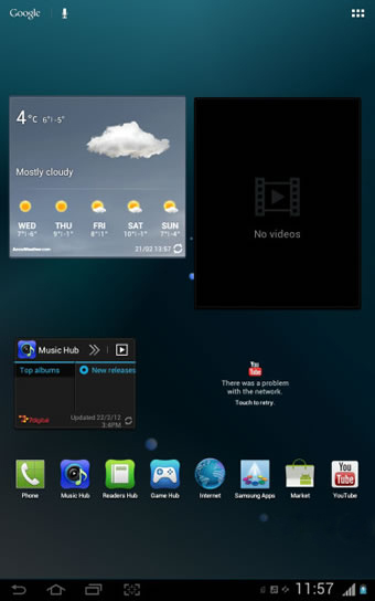 Cuối cùng, S Pen không thực sự cần phải chạm vào màn hình mới phản hồi tín hiệu. Việc này hỗ trợ các ứng dung như Photoshop cảm ứng để hiện thị con trỏ giúp bạn thực hiện chính xác hơn.Giao diện người dùngBỏ qua Honeycomb, Samsung Galaxy Note 10.1 sử dụng trực tiếp Ice Cream Sandwich. Với giao diện TouchWiz, thiết bị mang lại nhiều tùy biến giao diện hơn Honeycomb.