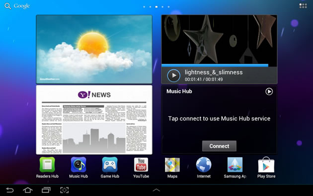 Bạn có thể áp dụng cách tương tự với App Drawer để sắp xếp lại trang, nhưng lại không thể xóa hoặc thêm trang mới. Thanh công cụ phía dưới có mũi tên nhỏ giúp mở một dòng ứng dụng có tên gọi MiniApps. Vì Galaxy Tab 10.1 cũng có nên chức năng này không hề mới, nhưng lại hoàn toàn độc quyền trong thế giới Android.