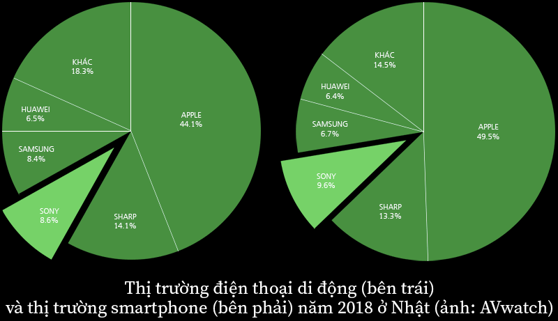 Trong năm 2018, Sony bán được khoảng 3 triệu chiếc Xperia ở Nhật, mức giảm mạnh lên đến 30.6% doanh số so với năm ngoái. Còn các đối thủ như Sharp, Samsung, Huawei đều có tăng trưởng.