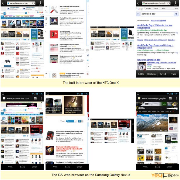 Nói về Internet và trình duyệt, chúng tôi chắc chắn rằng Galaxy Nexuslà người chiến thằng. Nhìn chung, các thiết bị cầm tay của Samsung cótốc độ duyệt web rất tốt, các thao tác như zoom đa điểm cực kỳ tốt,không có chút chậm trễ khó chịu nào cả. Không dừng lại ở đó, một số phépkiểm tra cho thấy add-on Flash Player trên Nexus cho hiệu suất tốt hơntrên HTC One X.