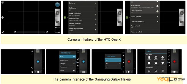 HTC One X là chiếc điện thoại được trang bị camera tốt hơn, cùng vớimột số tính năng khá thú vị như có thể vừa chụp hình vừa quay video cùngmột lúc, có nghĩa rằng bạn sẽ không phải chuyển đổi giữa chế độ hìnhảnh và video. Ngoài ra, One X có tính năng Best Shot cho phép bạn chọnhình ảnh tốt nhất trong hàng loạt những bức hình được chụp một cáchnhanh chóng. Tốc độ chụp ảnh của cả hai máy ảnh cũng rất nhanh, nhưngOne X có lợi thế hơn, cho phép bạn tập trung, và lưu bức ảnh trongkhoảng thời gian ngắn hơn so với Nexus.