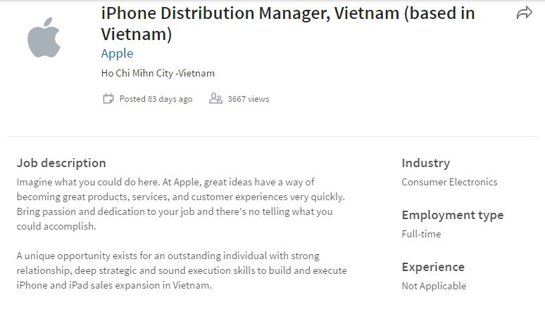 - Nhiều người Việt ứng tuyển chức danh Giám đốc Apple