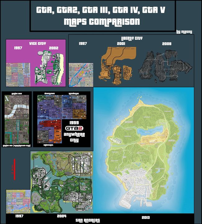 Ngoài đồ họa và âm thanh ngày càng "chất", chính bản thân game cũng đang bành trướng không ngừng. Hãy xem bức ảnh dưới đây về bản đồ trong dòng game Grand Theft Auto (GTA).