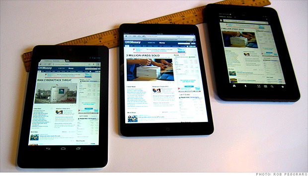 Mức giá của máy tính bảng cũng giảm đáng kể, nó thậm chí còn rẻ hơn máy đọc sách. Googlebán một phiên bản máy tính bảng của mình Nexus 7 với chỉ $ 199 khoảng 4,2 triệu đồng, và Amazon bây giờ cung cấp Kindle Fire với giá 159$ khoảng hơn 3,5 triệu, ít hơn khoảng 500 ngàn so với chiếc máy đọc sách Kindle đắt nhất và gần một triệu đồngso với chiếc Nook đắt nhất. Và sự xuất hiện của iPad Mini gần đây đã làm cho giá thành của máy tính bảng của Apple giảm xuống còn 329$ ( khoảng 7 triệu đồng) so với $ 499 (11 triệu) một chiếc IPad ban đầu.